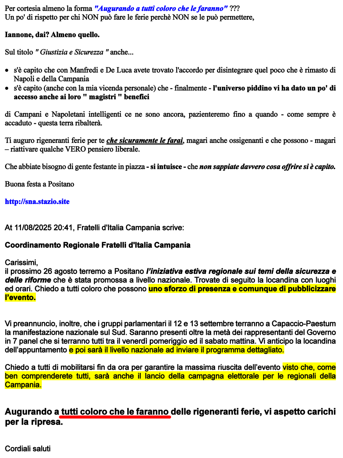At 11/08/2025 20:41, Fratelli d'Italia Campania scrive: